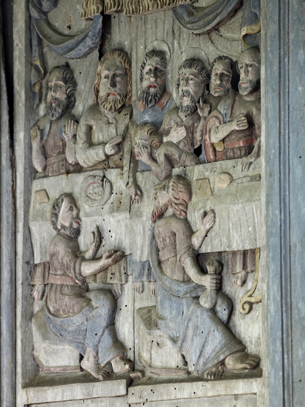 Tribune en bois polychrome, compartiment sculpté représentant des scènes de la Passion, la CèneImmatriculation