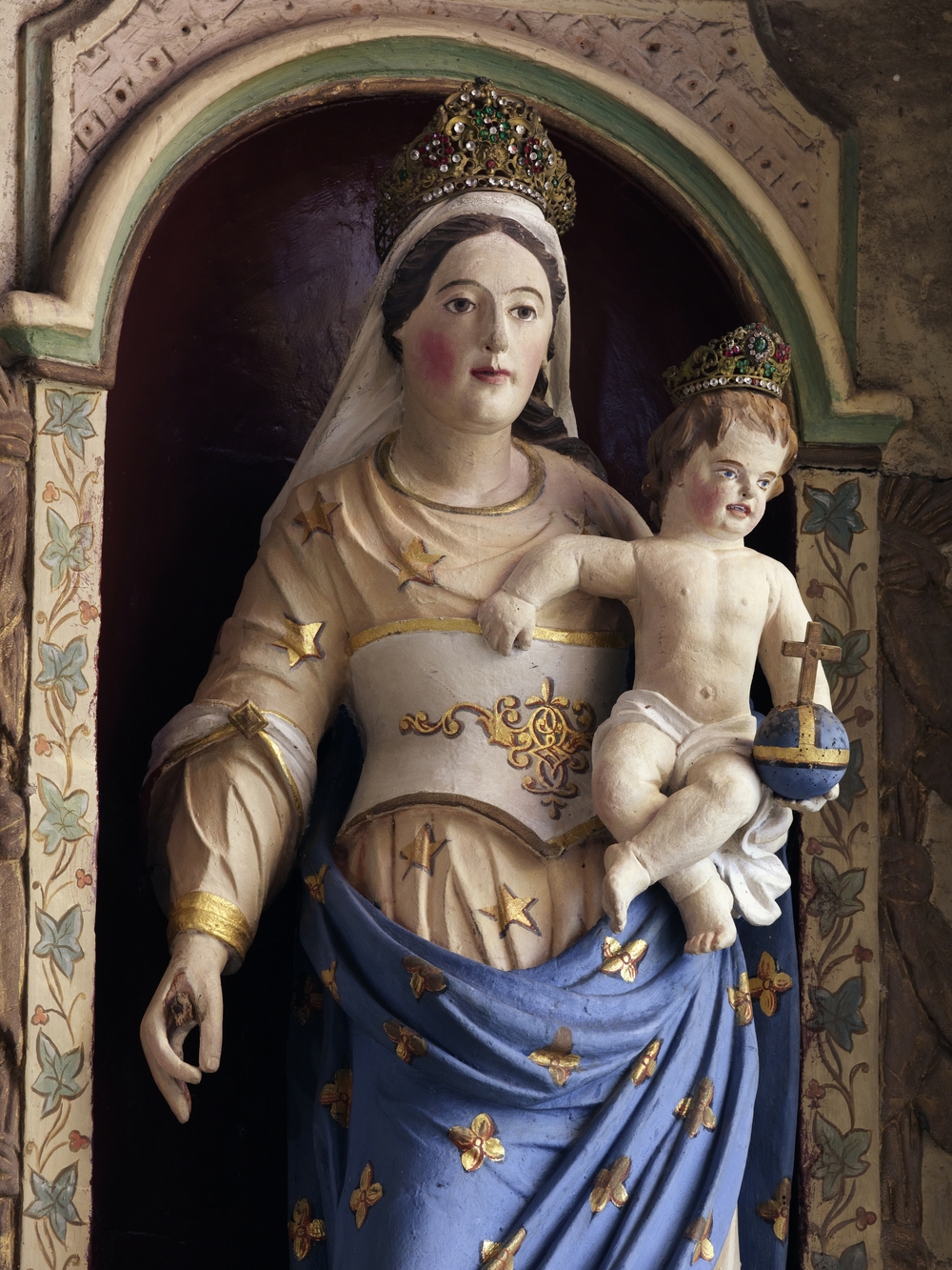 Vue de détail du maître-autel : détail de la statue représentant la Vierge à l'enfantImmatriculation