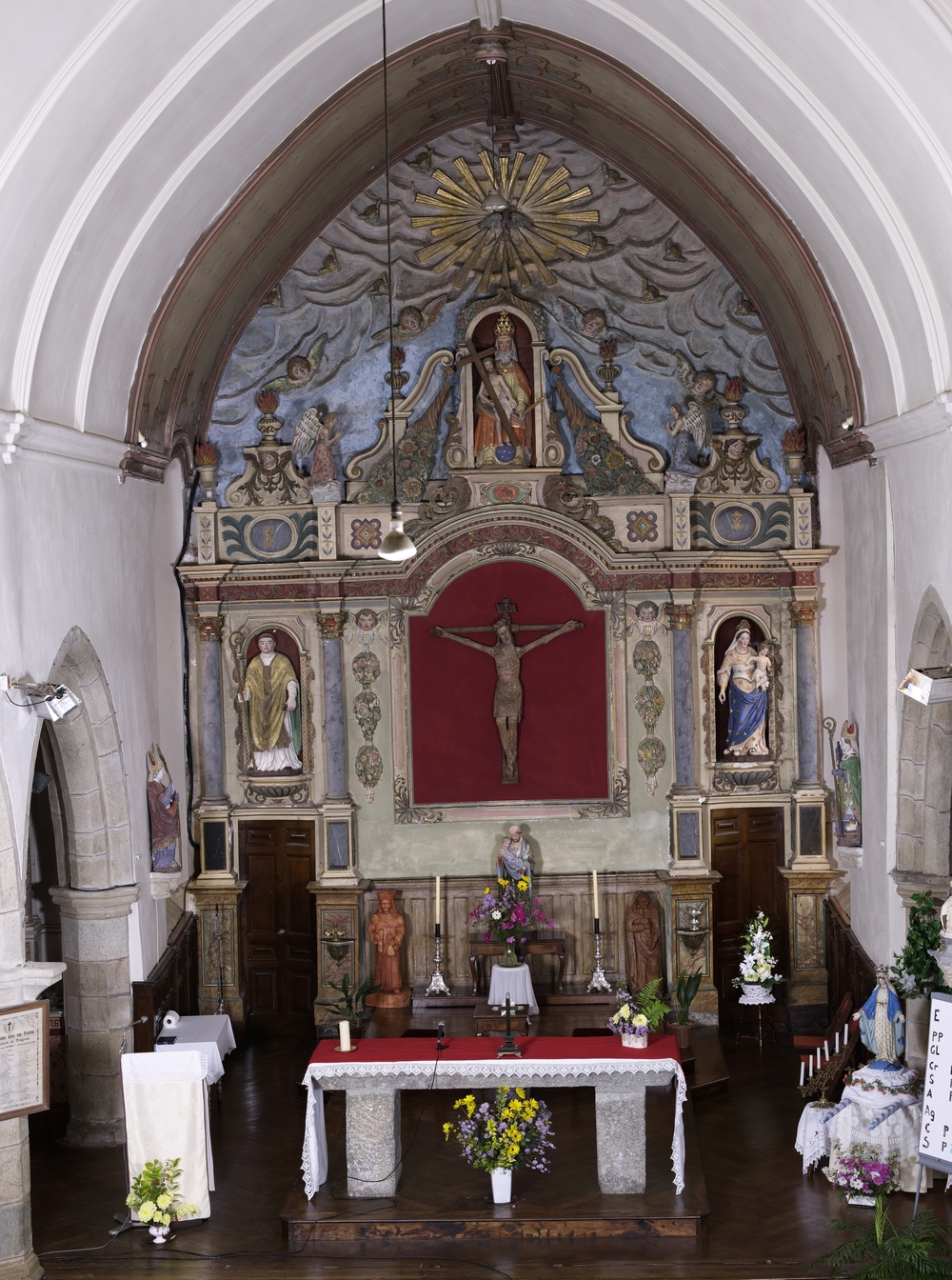 Vue générale du maître-autel valorisant le Christ en croixImmatriculation