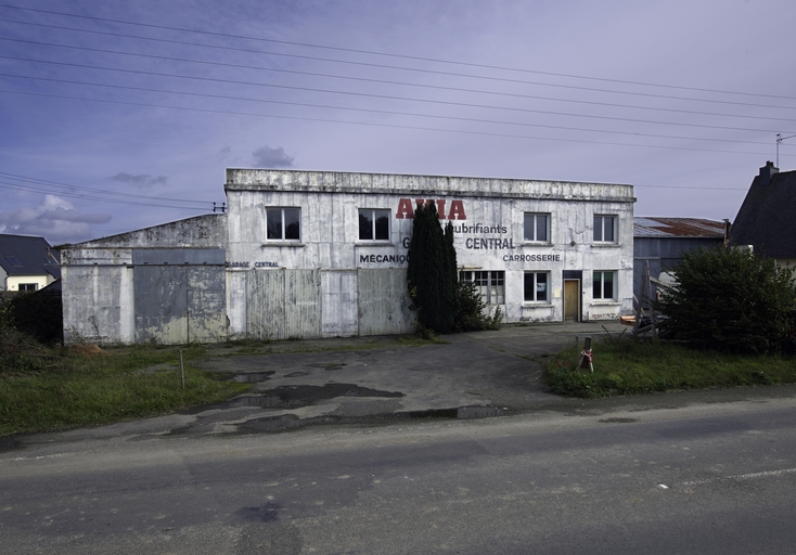 Cavan, le bourg, rue Henri et Charles Avril : ancien garage central (mécanique et carrosserie) datable des années 1950-1960Immatriculation