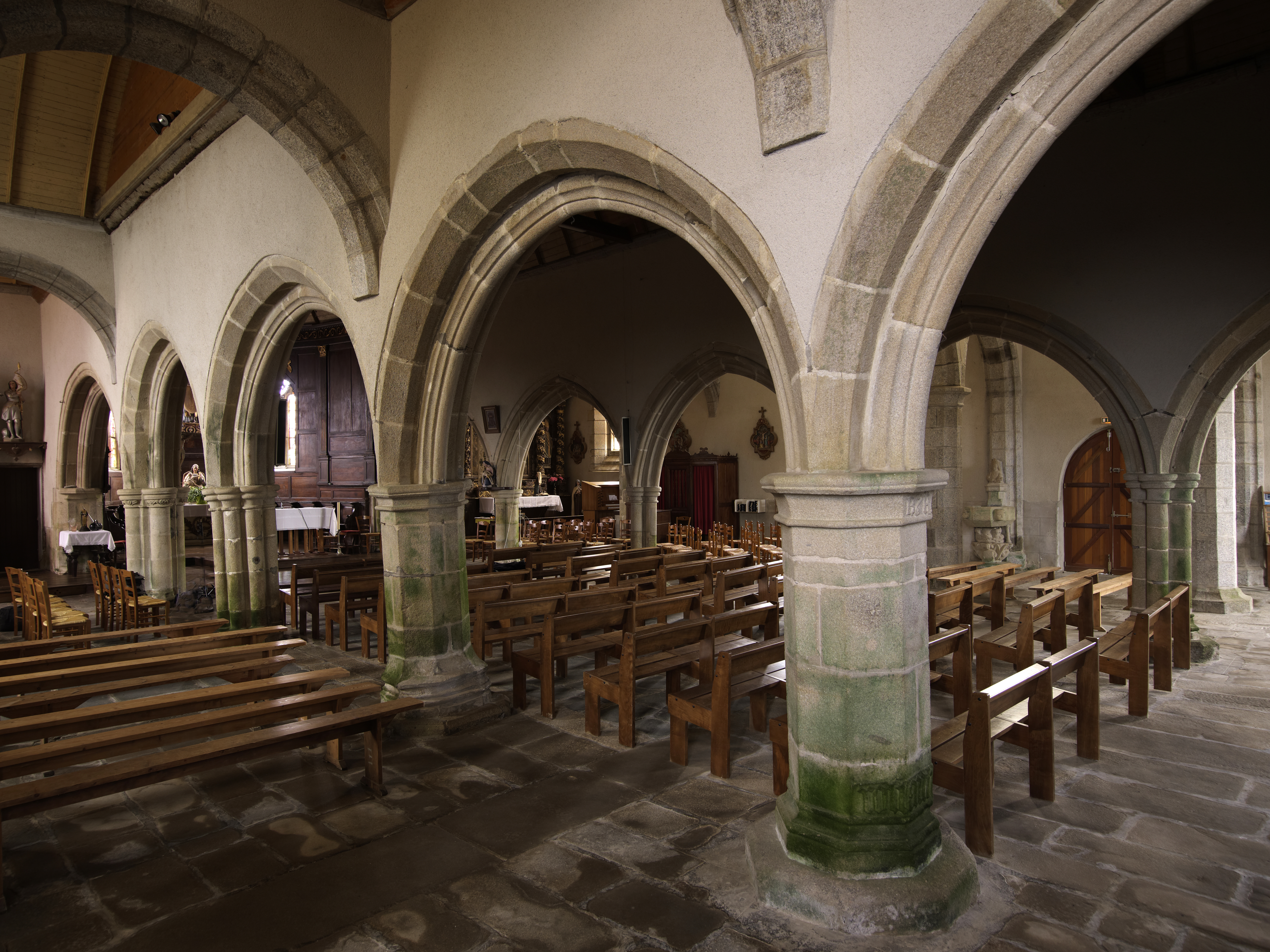 Cavan, le bourg : église paroissiale Saint-Chéron, vue intérieure, détail des piliers nordImmatriculation