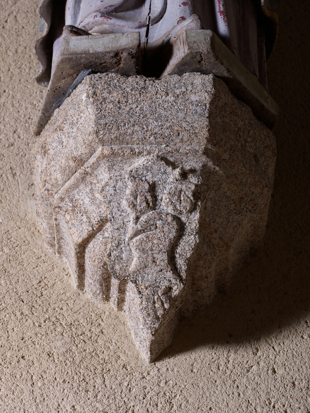 Plouaret : chapelle Sainte-Barbe, vue intérieure, choeur, console armoriéeImmatriculation