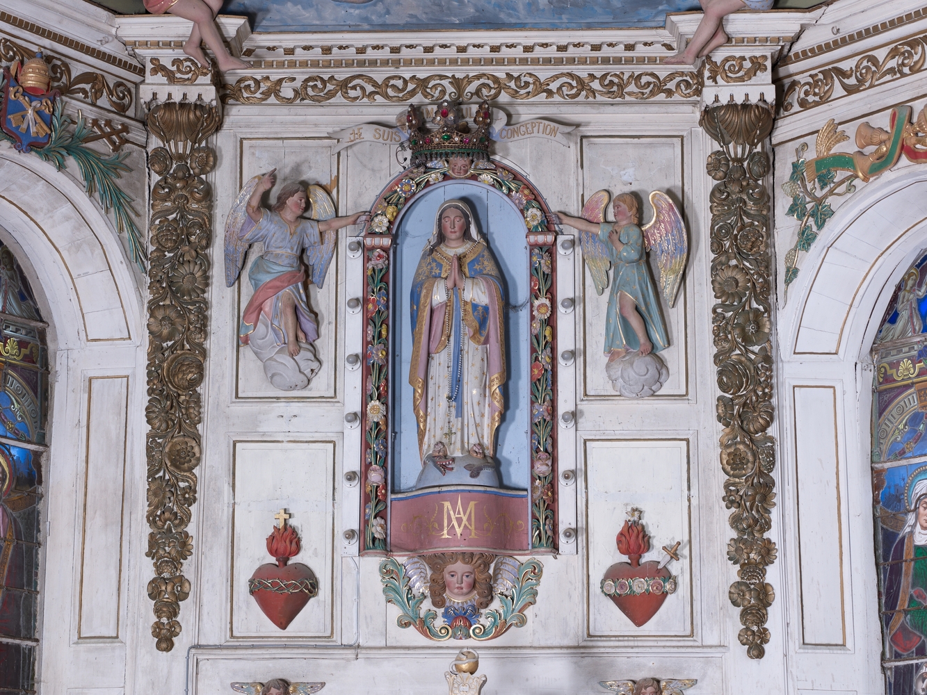 Prat, le bourg : église paroissiale Saint-Pierre, vue intérieure, choeur, ornementationImmatriculation