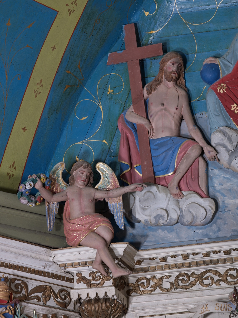 Prat, le bourg : église paroissiale Saint-Pierre, vue intérieure, choeur, ornementationImmatriculation