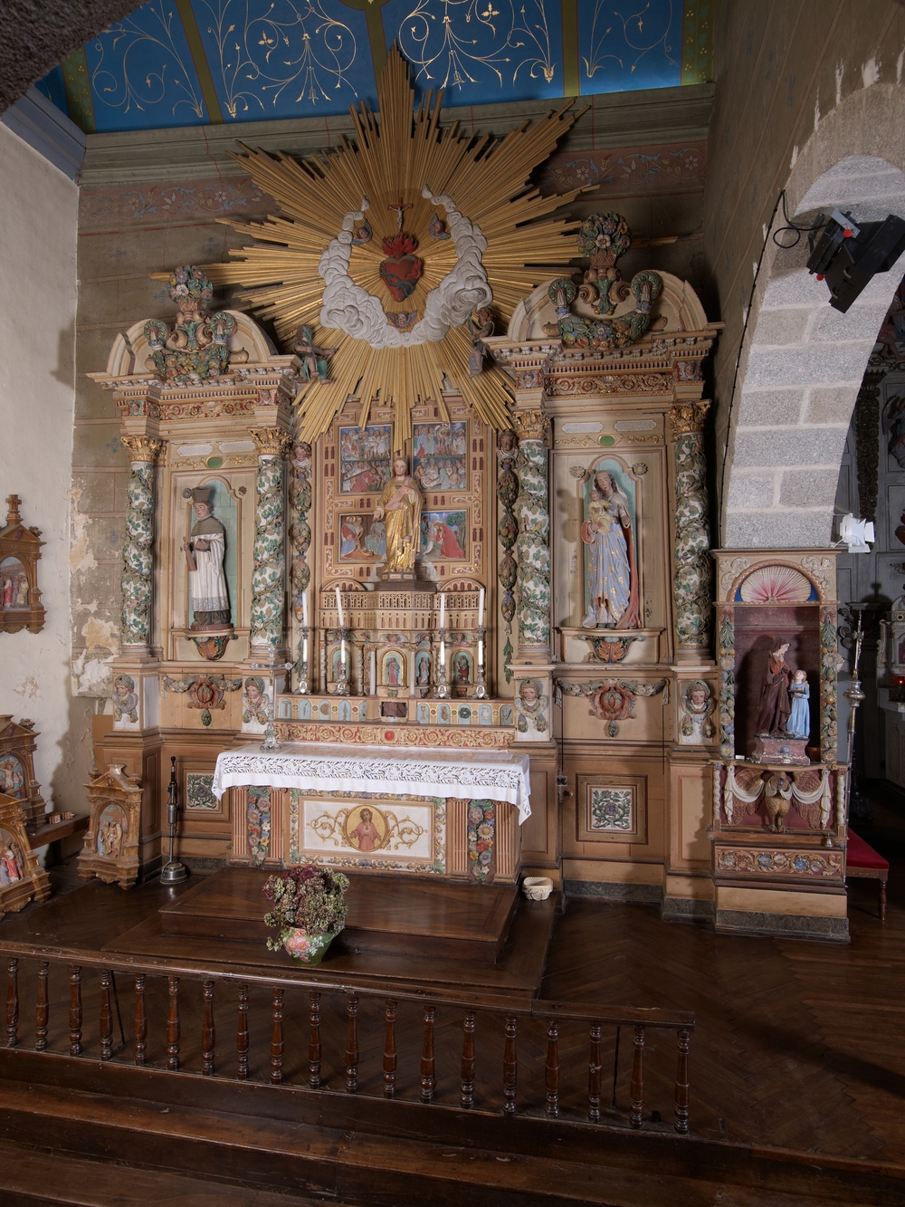 Prat, le bourg : église paroissiale Saint-Pierre, vue intérieure, retable nordImmatriculation
