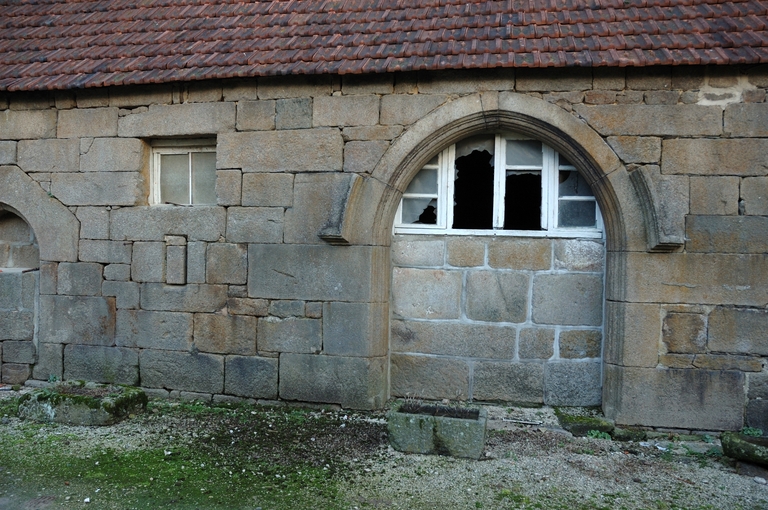 Plouaret, Kerverziou : long bâtiment à usage d'étable (à vache, à chevaux), porte charretière, archivolte et moulures de style gothiqueImmatriculation