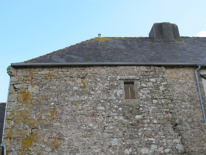 Plouaret, La Haye : manoir, élévation postérieure, détail. Le linteau de fenêtre à larmier est datable de la 1ère moitié du 15e siècleImmatriculation