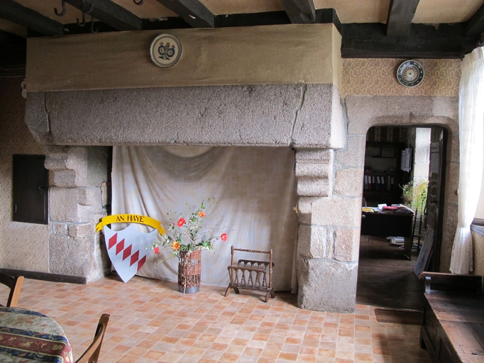 Plouaret, La Haye : manoir, cheminée de la salle basse et porte d'accès à une pièce au nord (porte à décor en accolade datable du début du 16e siècle)Immatriculation