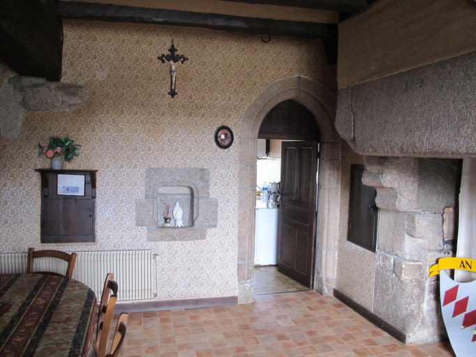 Plouaret, La Haye : manoir, salle basse, porte d'accès à la cuisine (remaniée), passe-plat et placard muralImmatriculation