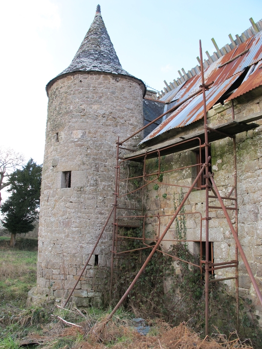 Plouaret, Kerbest : manoir, élévation postérieure. Tour d'escalier enfermant une vis en pierreImmatriculation
