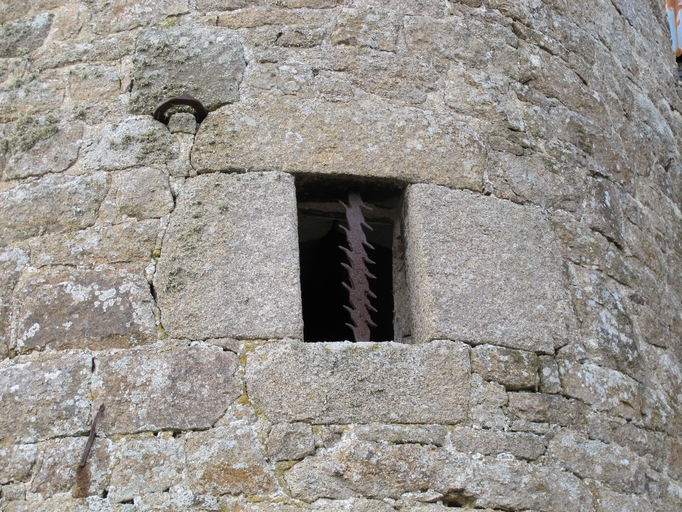 Plouaret, Kerbest : manoir, élévation postérieure. Baie de la tour d'escalier ayant conserver son barreauImmatriculation