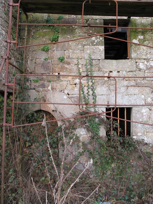 Plouaret, Kerbest : manoir, élévation postérieure. Détail des ouvertures : porte en plein cintre et fenêtre au rez de chaussée, simple fenêtre à l'étageImmatriculation