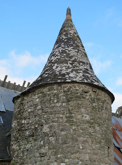 Plouaret, Kerbest : manoir, élévation postérieure. Toit en poivrière de la tour d'escalier couronné par un épi de faîtage en terre cuiteImmatriculation