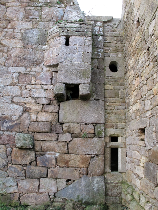 Plouaret, Kerbest : manoir, latrine flanquant le pignon est. Collage datant du 4e quart du 20e siècle entre le manoir et l'édifice en retour d'équerreImmatriculation