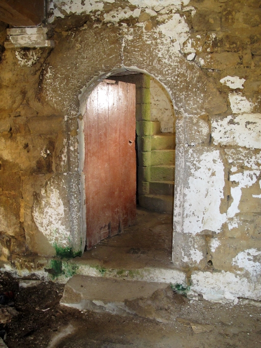 Plouaret, Kerbest : manoir, porte en plein cintre donnant sur la tour d'escalier enfermant une vis en pierreImmatriculation