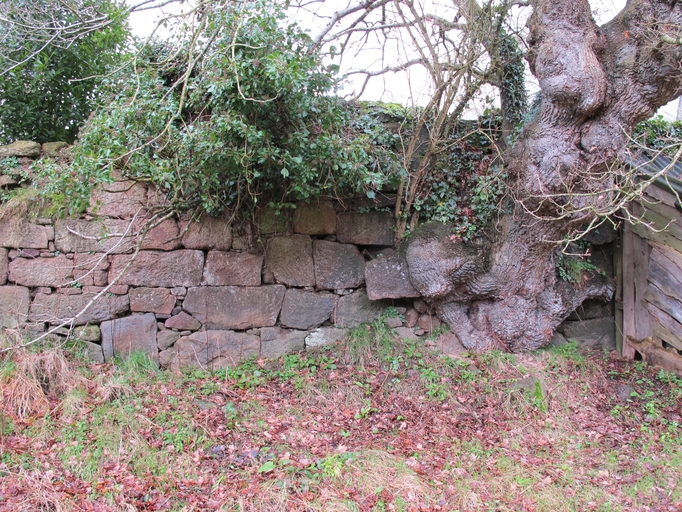 Plouaret, Kerhuon : manoir, vue depuis le sud-est. Détail du mur soutenant le terre-pleinImmatriculation