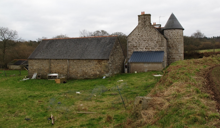 Plouaret, Kervégan Braz : manoir, vue depuis le nord-ouest. Le pignon ouest et la tour d'escalier trahissent un remontage de maçonnerieImmatriculation