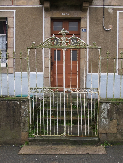 Plouaret, le bourg, 14 place de l'église : maison datée 1865, détail de la ferronnerie de la porteImmatriculation