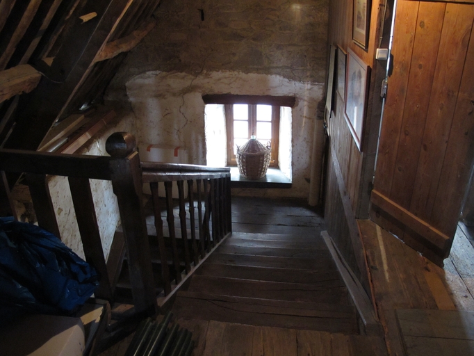 Plouaret, le bourg, 29 rue du Général de Gaulle : maison datée 1838, escalier rampe sur rampeImmatriculation