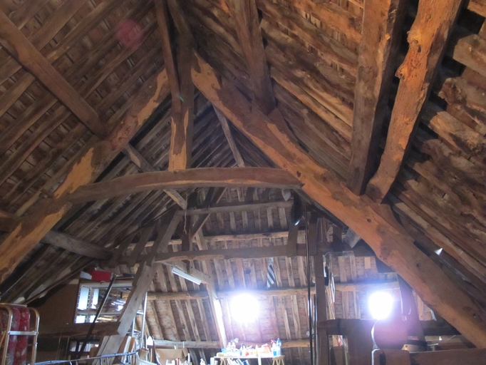 Plouaret, le bourg, 29 rue du Général de Gaulle : maison datée 1838, étage de comble, ancienne charpenteImmatriculation