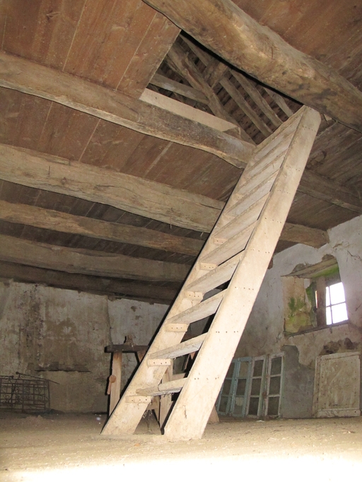 Plouaret, Kerlan : ferme, rez-de-chaussée, premier étage, échelle menant à l'étage de combleImmatriculation