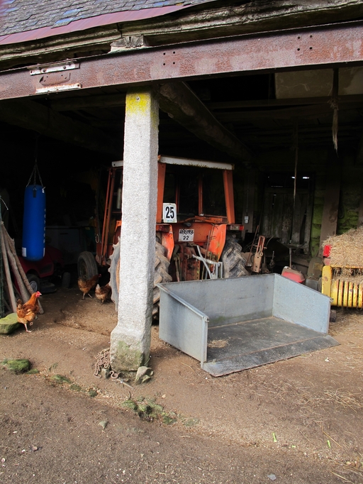 Plouaret, Guergarellou : grange à deux piliers, pilier monolithe en graniteImmatriculation
