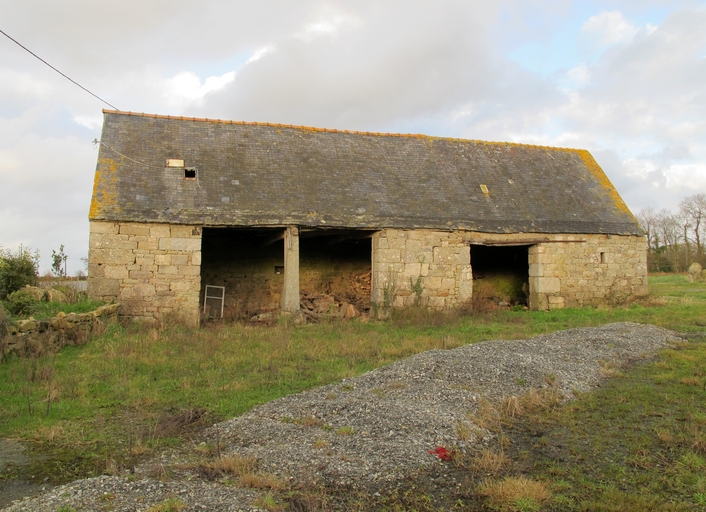 Plouaret, la Garenne : grange dotée d´une porte charretière à un pilier monolithe en granite portant le millésime 1805. Elle a été agrandie par l´est et dotée d´une seconde porte charretièreImmatriculation