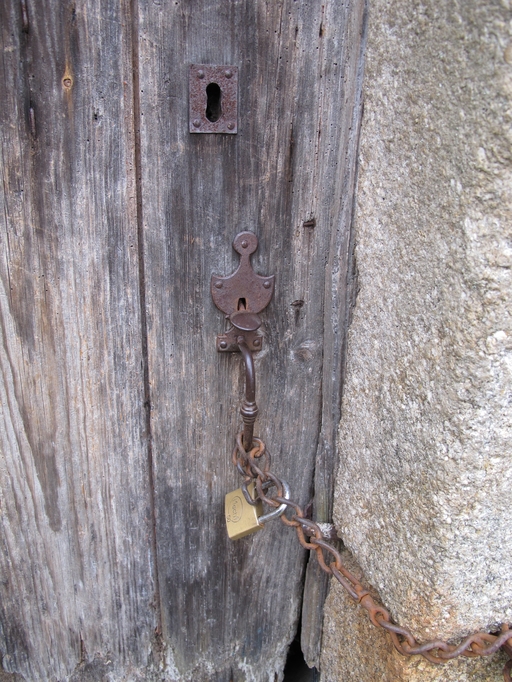 Plouaret, Porz Huon : ferme, élévation antérieure, porte, ancienne serrureImmatriculation
