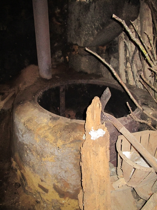 Plouaret, Porz Huon : ferme, rez-de-chaussée, grand récipient servant à cuire la nourriture des cochonsImmatriculation