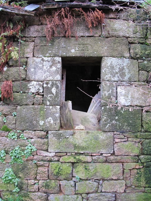 Plouaret, Porz Huon : grange, fenêtre sud. Le linteau porte le chronogramme 1841Immatriculation