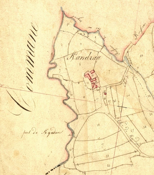 Extrait du cadastre ancien de la commune de Plouaret, 1835 : pont de Kgadon (Kergadon) et Kandrau (Kerandraou)Immatriculation