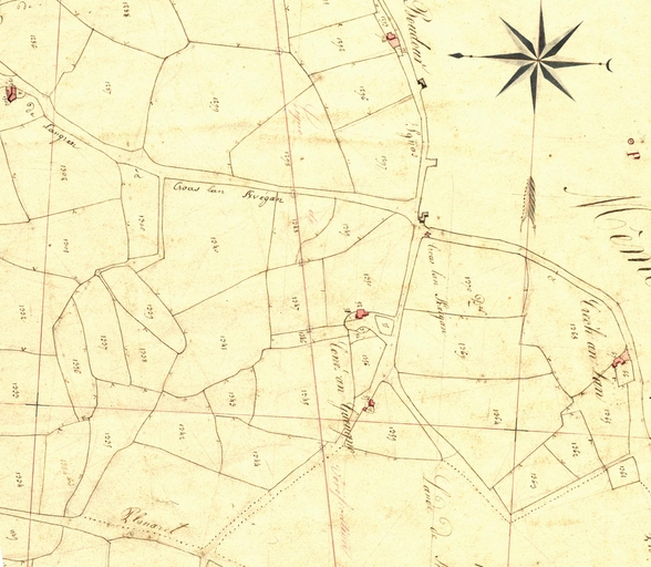 Extrait du cadastre ancien de la commune de Plouaret, 1835 : Croas Lan Kvégan sur le chemin de Langren à Croas lan Kvégan (Kervégan), Crec'h an Lan, Convenant an GueugnoImmatriculation