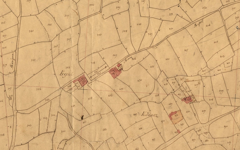 Extrait du cadastre ancien de la commune de Plouaret, 1835 : Kepol (Kerépol), Kdanez (Kerdanet)Immatriculation