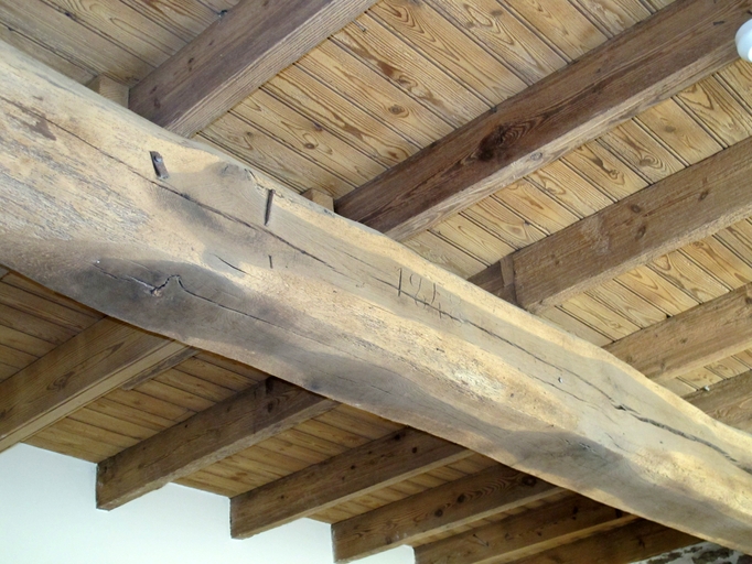 Plouaret, Run Riou : logis, rez-de-chaussée, poutre datée 1848 et plancher de l'étage sur solivesImmatriculation