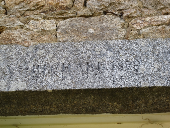 Plouaret, Convenant Coader : logis de ferme. Le linteau de la fenêtre centrale porte l'inscription : VF.BICH ARA (?) et le chronogramme 1878Immatriculation