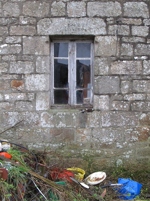 Plouaret, Kerguib : ferme, élévation antérieure, fenêtre. Le linteau porte l'inscription : EVEN JH GUILLERMImmatriculation