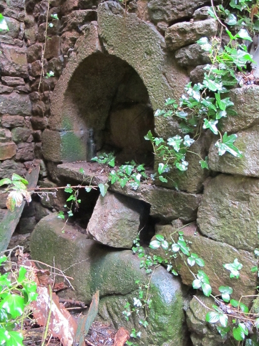 Plouaret, Ruguézennec : ferme datable du 17e siècle, vestiges envahis par la végétation, saloir muralImmatriculation