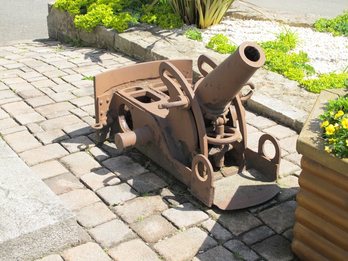 louaret, le bourg, place de l'église : monument aux morts (1914-1918 ; 1939-1945 ; 1954-1962), mortier français de 58 n° 2 dit Crapouillot de l´armée françaiseImmatriculation