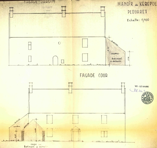 Plouaret, Kerépol : élévation du manoir (avant travaux de restitution)Immatriculation