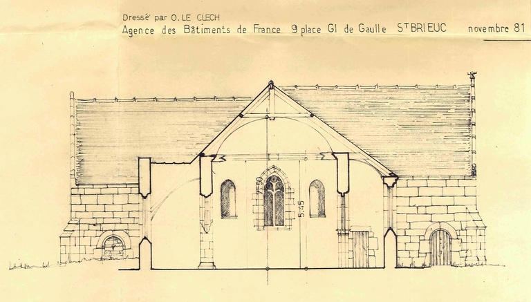 Plougras, le bourg : élévation de l'église paroissiale Saint-PierreImmatriculation