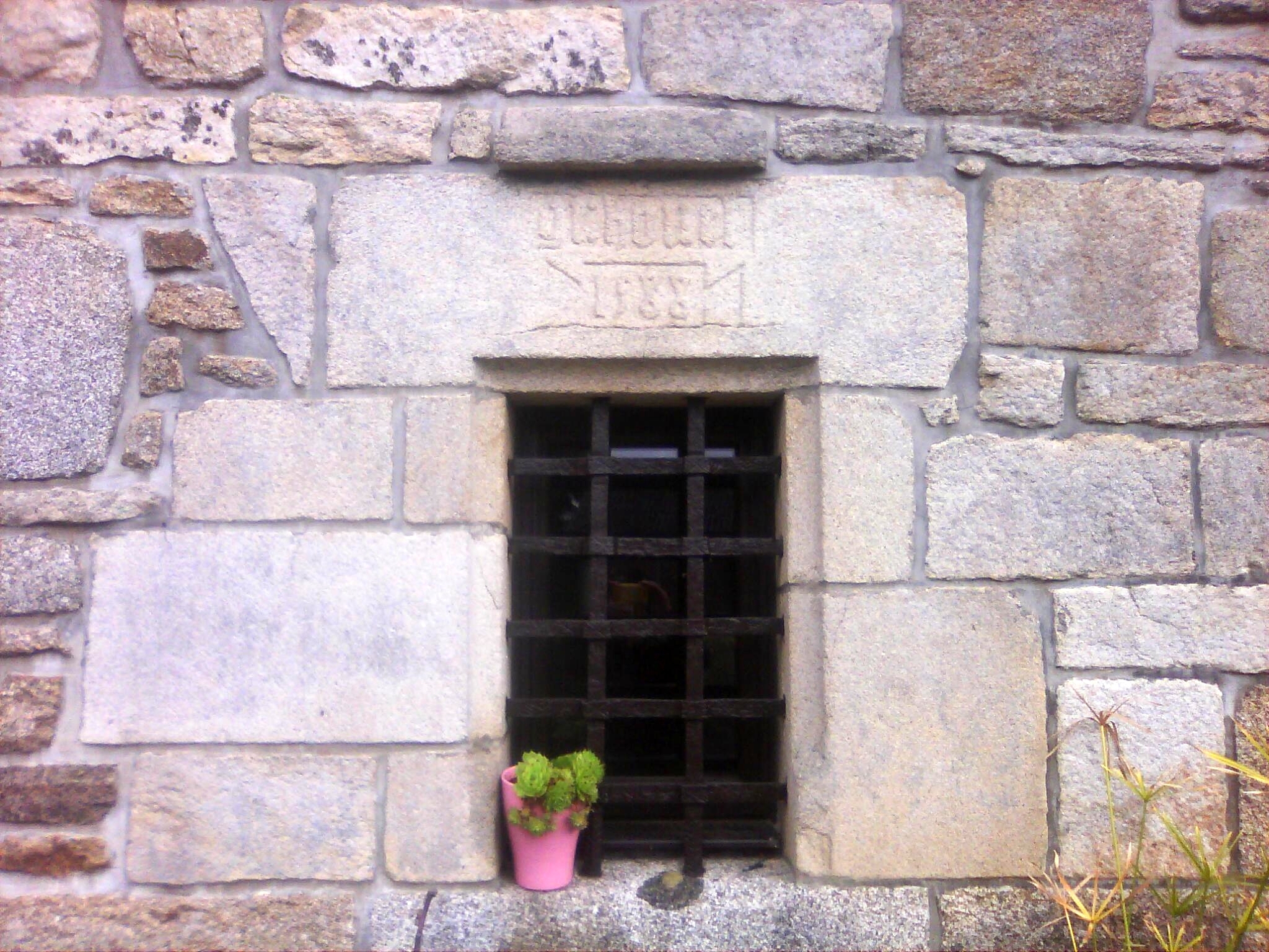 inscription sur un linteau de fenêtre portant le nom du commanditaire G I HOUEL et la date de 1588Immatriculation