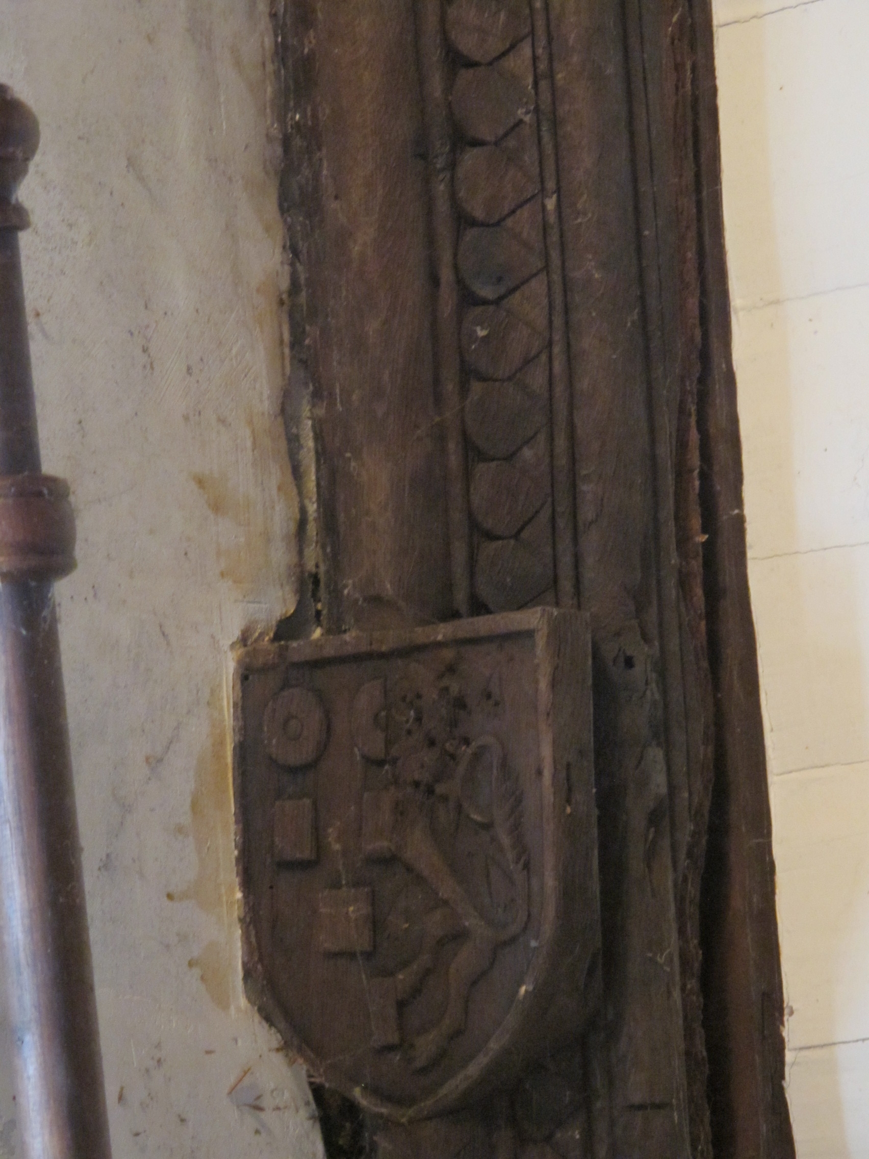 Plafond de la chambre de l'étage, armoiries d'alliance : Ferron et TroussierImmatriculation