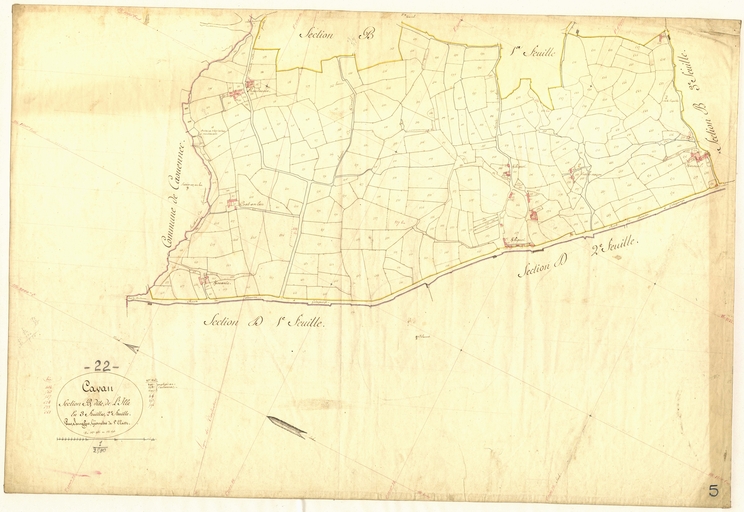 Feuille B2 du cadastre ancien de la commune de Cavan, 1835Immatriculation