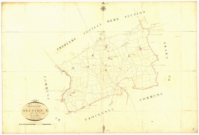 Feuille A2 du cadastre ancien de la commune de Lanvézéac, 1836Immatriculation