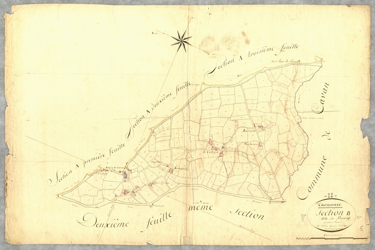 Feuille B1 du cadastre ancien de la commune de Caouënnec, 1826Immatriculation