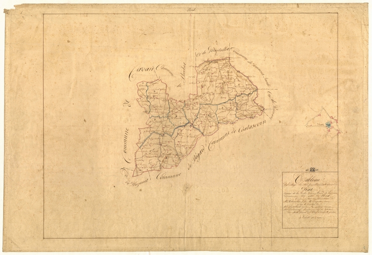Cadastre ancien, commune de Prat, 1 tableau d'assemblage et 16 feuilles, 1835.Cadastre.