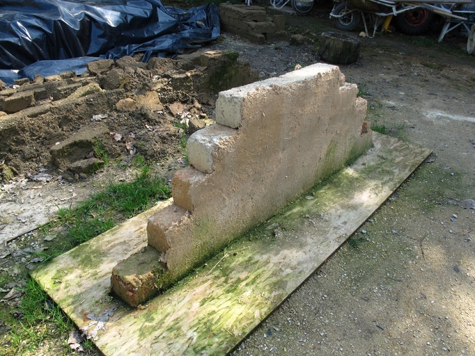 Berhet, Milin Coat Cognon : installation pédagogique sur les enduits naturels, vue générale (Berhet, Milin Coat Cognon : installation pédagogique sur les enduits naturels (chaux, sable, poils d'animaux...)Immatriculation