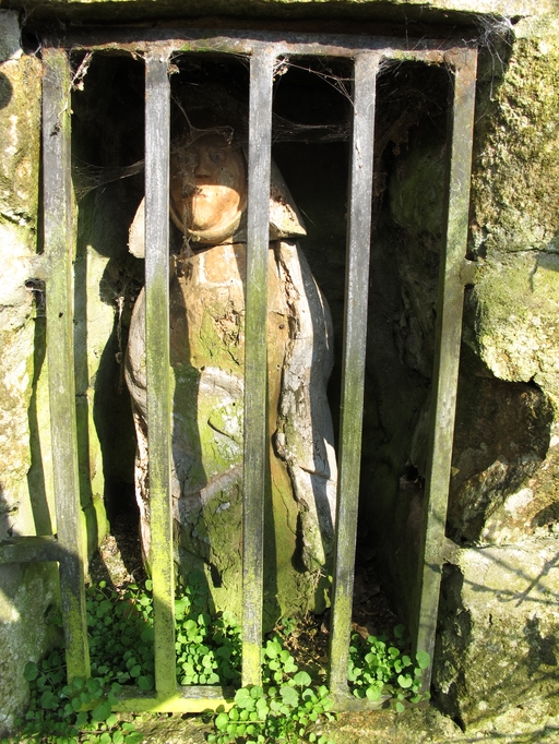 Berhet : fontaine de dévotion dédiée à Sainte-Brigitte (en breton Berc'hed). Statue en bois polychrome représentant Sainte-BrigitteImmatriculation