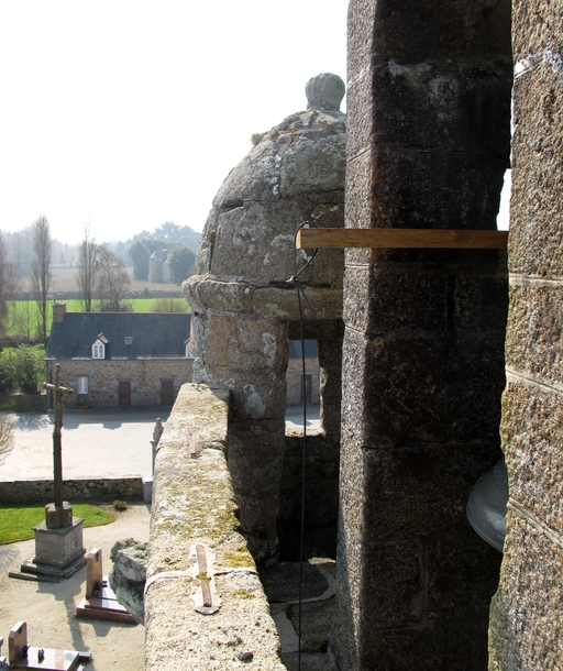 Berhet, le bourg : église paroissiale de Sainte-Brigitte, dôme de l'escalier en vis du clocherImmatriculation