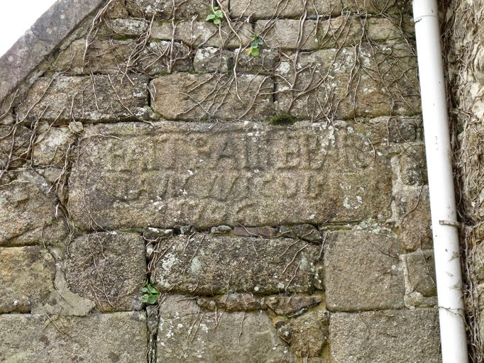 Pluzunet, Kervern : détail d'une inscription et millésime 1706Immatriculation